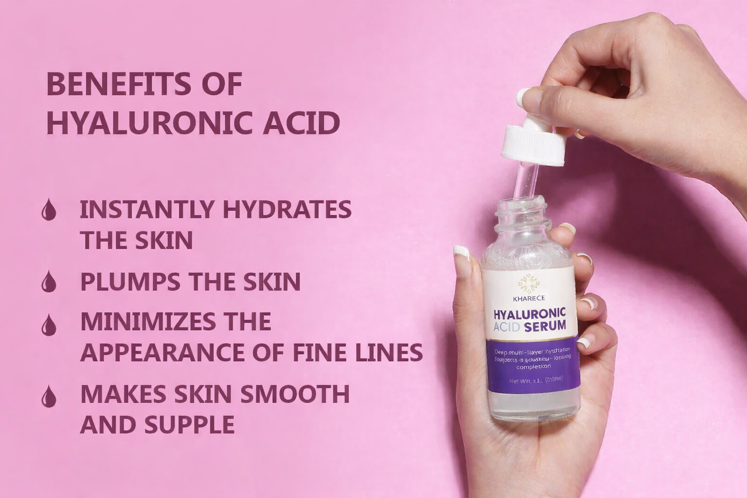 It’s actually not an ‘acid’ at all. Instead, Hyaluronic Acid is a gel-type sugar-based molecule that can hold a huge amount of water - up to 1000x its own weight to be precise.