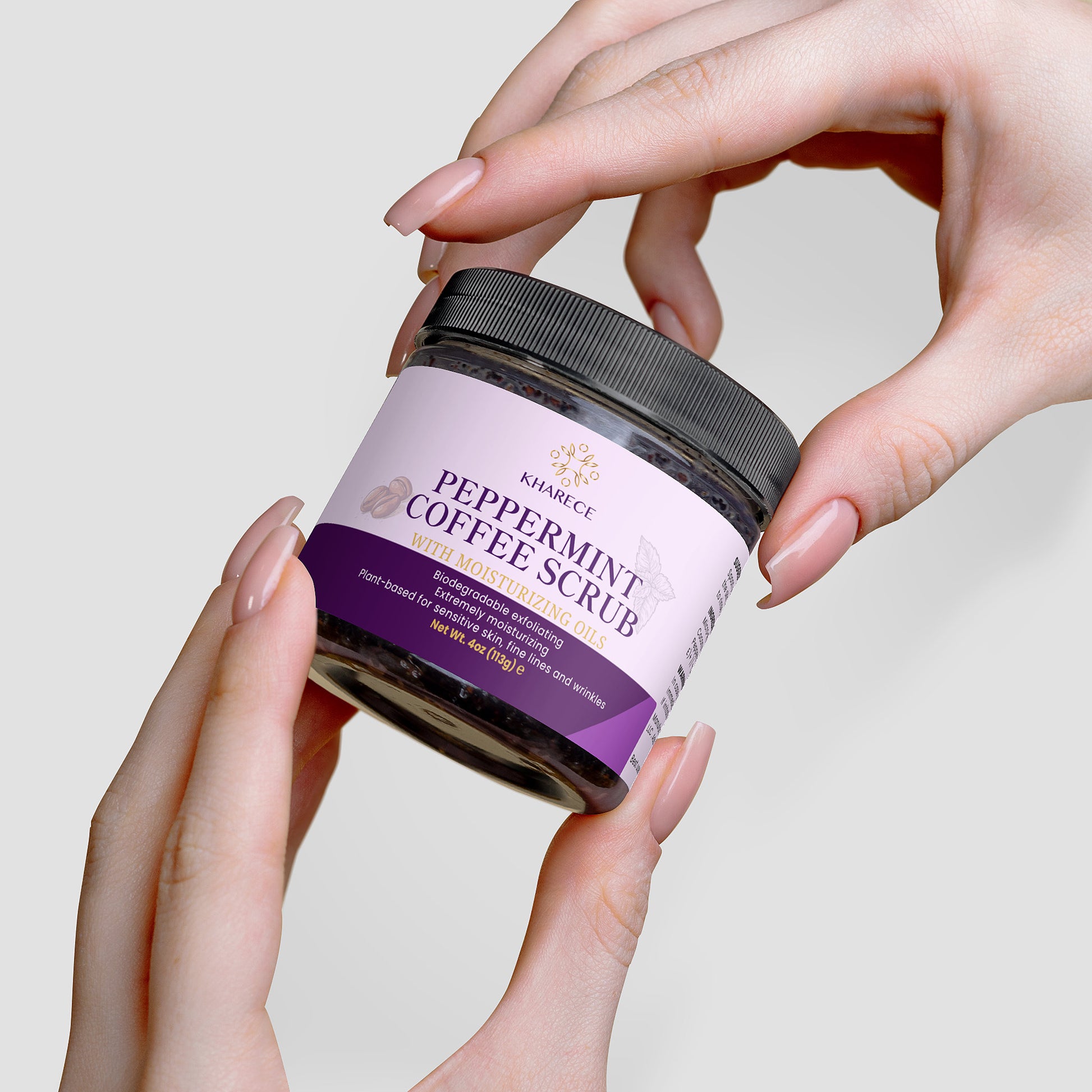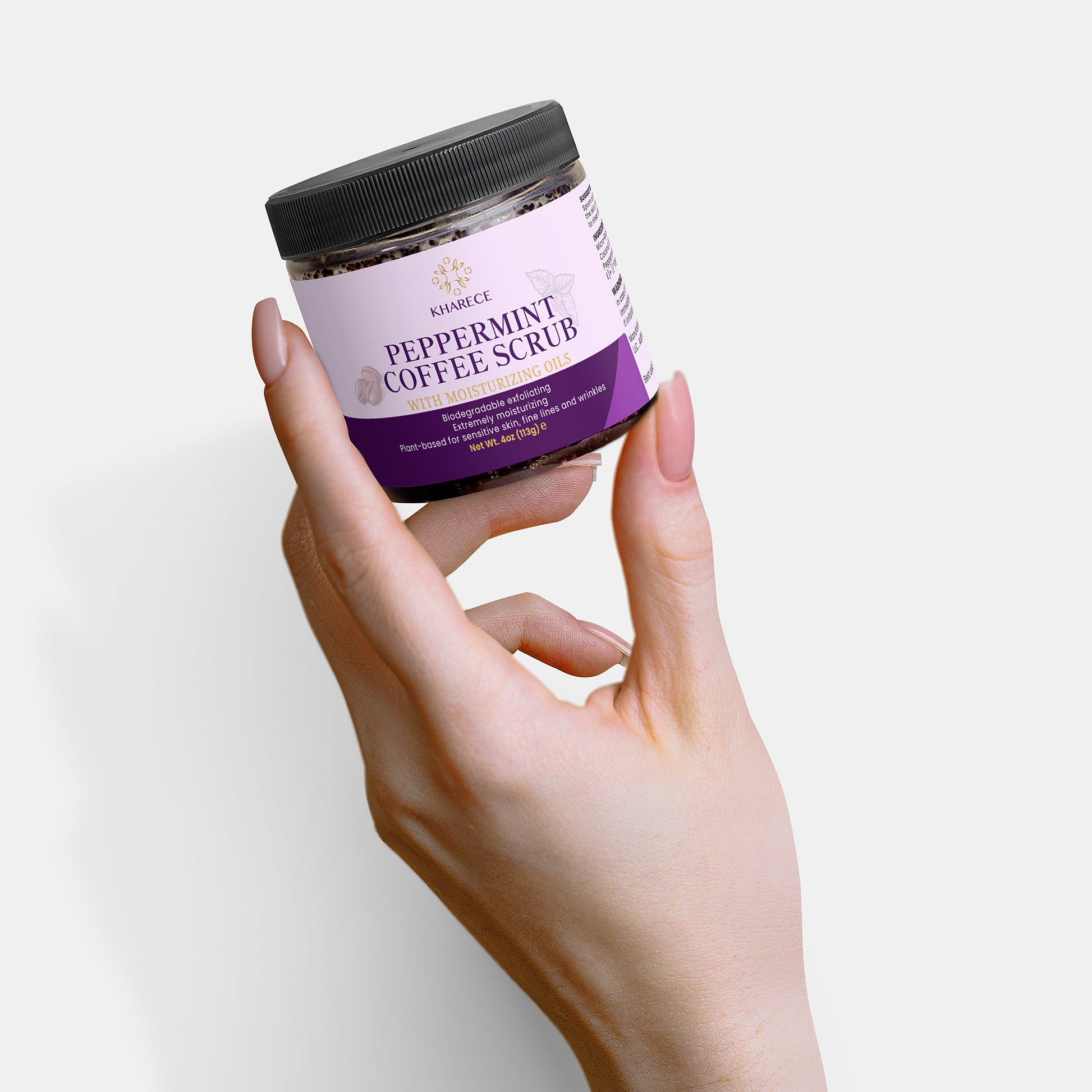 - Enjoy the invigorating scent of Peppermint and Dark Roast coffee as you indulge in your skincare routine.
